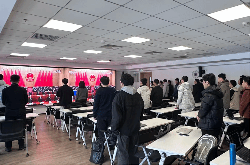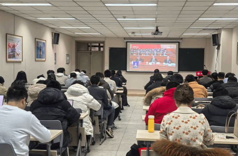 收看过程中,师生们认真聆听李强总理所作的政府工作报告,重点关注报告中关于2025年经济社会发展的工作回顾、“十五五”时期的主要目标任务,以及2026年在培育新质生产力、加快高水平科技自立自强、打造智能经济新形态等方面的部署要求。报告中提及的人工智能、量子科技、数字经济等前沿领域发展规划,与计算机学科建设、科研创新方向高度契合,现场气氛庄重而热烈,引发师生强烈共鸣。大家边看边记,深入领会报告的核心要义与精神内涵,不时为报告中的新部署、新举措报以掌声。