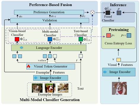 开放词汇识别旨在识别开放场景中的任意感兴趣类别或目标,赋予机器感知世界的通用视觉能力。现有的开放词汇识别方法主要通过向预训练视觉语言模型提供类别的文本描述来定义开放词汇分类器。文本的模糊性和歧义性等问题会导致生成的开放词汇分类器无法充分表征类别,影响开放词汇识别的准确性。为了解决这一问题,CVPR 2024论文《OVMR: Open-Vocabulary Recognition with Multi-Modal References》提出了基于多模态参考的开放词汇识别方法。该方法首先利用多模态分类器生成模块将多张示例图像融合成视觉令牌,并进一步使用语言编码器动态融合视觉令牌和文本令牌,生成了开放词汇多模态分类器。为了削弱低质量图像或文本对于多模态分类的负面影响,基于偏好的融合模块复用示例图像来评估各类别对单模态视觉文本分类器及多模态分类器的偏好,并基于偏好权重动态融合各分类器,形成最终的高质量的融合分类器。所提出的方法具有良好的泛化性,可即插即用至开放词汇分类和检测等任务中,无需额外微调便可在众多的下游任务中取得领先的性能。例如,在11个开放词汇分类任务上取得了82.34%的平均准确率,超过只依赖文本的基线方法13%,并在使用相同多模态数据的实验设置下超过了依赖微调的提示学习微调方法CoCoOp 1.87%。此外,在开放词汇检测LVIS数据集上,此方法检测精度超过第二名MM-OVOD 1.9%。