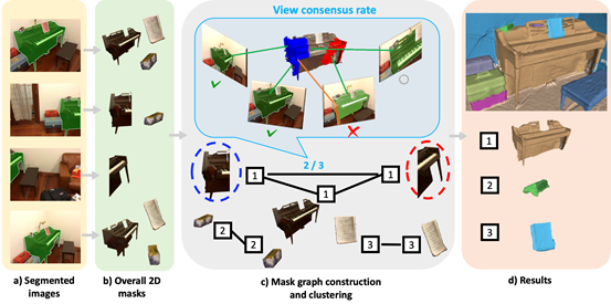 [34] Mi Yan, Jiazhao Zhang, Yan Zhu, He Wang, MaskClustering: View Consensus Based Mask Graph Clustering for Open-Vocabulary 3D Instance Segmentation. In Proc. CVPR 2024.
