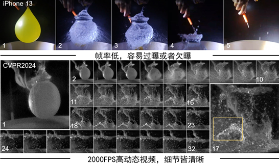脉冲相机是受灵长类动物视觉系统启发而发明的新型高速成像设备,其能够对到达像素点的光子不断积分,当光子累积的能量达到既定阈值后,该像素点发放一个单比特脉冲。对累积的光子能量进行单比特量化,相较于多比特量化,能够有效降低数据传输压力、有力保障脉冲信号的高速读出。但单比特脉冲所能表征的环境光动态范围受到了一定制约,这是因为对高动态范围(High Dynamic Range, HDR)的精细化记录依赖于高位的多比特数据。对于存在高速运动的高动态范围场景,是否可以实现既要高帧率(High Frame Rate, HFR)使之看得快,又要高比特位使之看得清的脉冲成像?CVPR 2024论文《Towards HFR and HDR Video from Rolling-Mixed-Bit Spikings》提出了一种采用滚动混合比特方式读出脉冲信号的相机工作模式,该模式通过在单比特脉冲信号中循环滚动读出多比特脉冲,从而保留了少部分稀疏的多比特脉冲信息。之后,通过对单比特高速脉冲进行光流估计,实现对稀疏的多比特脉冲信号进行上采样插值,获得与单比特脉冲信号同等稠密程度的多比特脉冲信号。最后,通过将多比特信号与单比特信号进行时空维度的融合,重构得到每秒2000帧的高动态范围视频。实验表明,该论文提出的方法能够在只增加约2%数据冗余的条件下,达到媲美于完全三比特脉冲的高动态重构视频效果。同时对比传统基于帧的商业相机,该论文提出的方法在连续记录高速运动场景方面存在潜在优势。