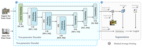 为了减少对大规模数据集的依赖,最近在3D分割领域的研究开始借助少样本学习。目前的3D少样本分割方法首先在“已见”类上进行预训练,然后评估它们在“未见”类上的泛化性能。然而,先前的预训练阶段不仅引入了过多的时间开销,还在“未见”类上产生了显著的领域差距。为了解决这些问题,CVPR 2024论文《No Time to Train: Empowering Non-Parametric Networks for Few-shot 3D Scene Segmentation》(Highlight)提出了一种用于少样本3D分割的非参数网络Seg-NN及其参数化变体Seg-PN。Seg-NN无需训练,通过手工设计的滤波器提取稠密表示,其性能与现有的参数化模型相当。由于消除了预训练,Seg-NN能够减轻领域差距问题并节省大量时间。基于Seg-NN,Seg-PN仅需训练一个轻量级的查询-支持传输(QUEST)模块,该模块增强了支持集和查询集之间的交互。实验表明,Seg-PN在S3DIS和ScanNet数据集上分别比之前的最先进方法提高了4.19%和7.71%的mIoU,同时减少了90%的训练时间,显示出其有效性和高效性。