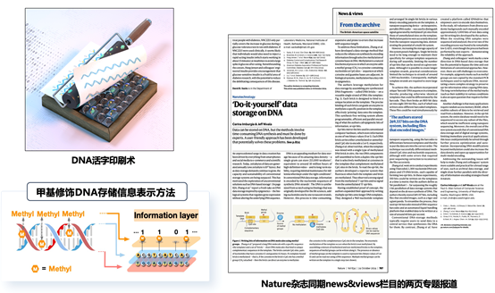 图1. 表观比特DNA存储信息表示方法和Nature相关专题报道