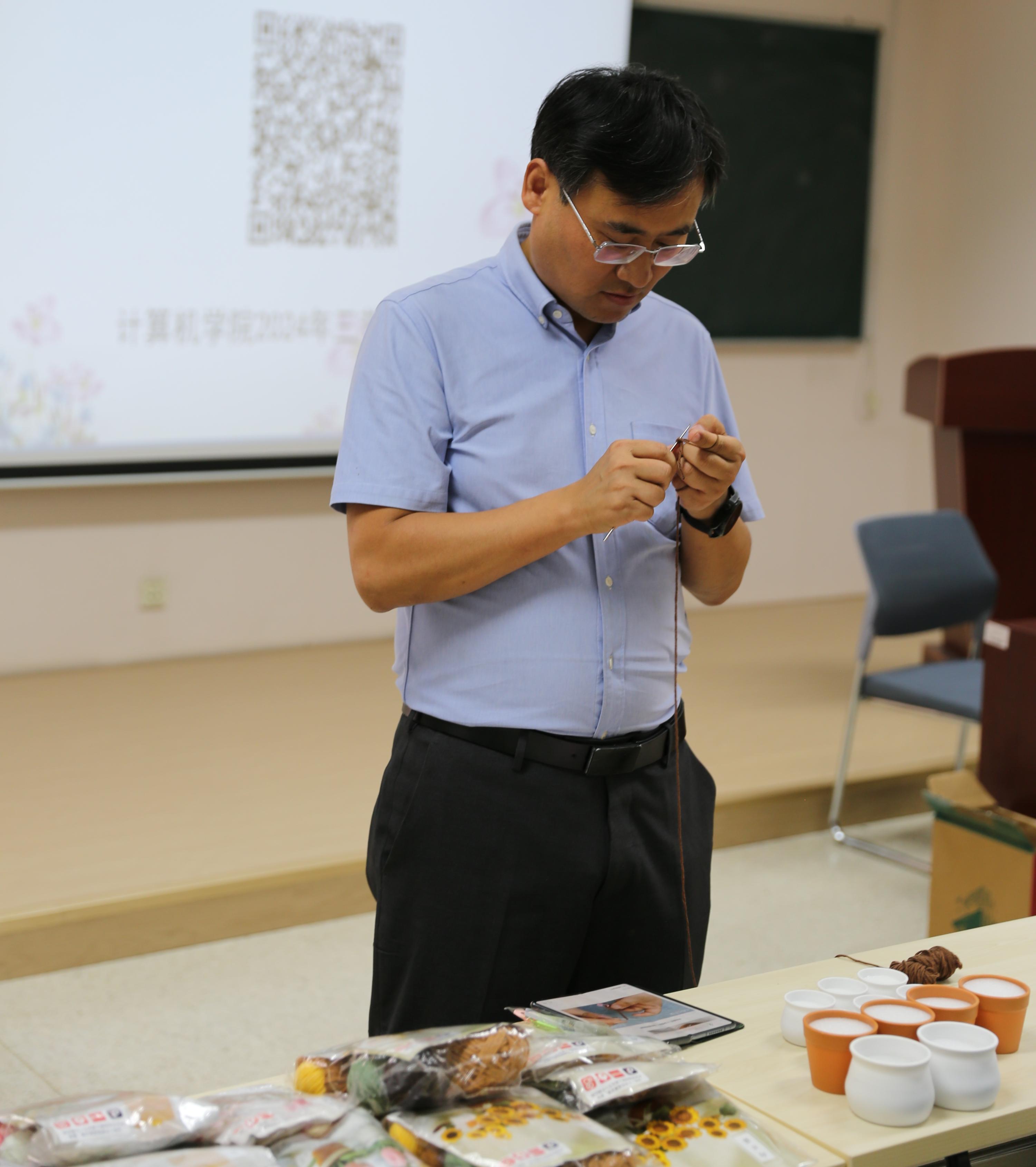 经过周密规划与一个多月的精心筹备,“师恩如花,匠心筑梦”——2024年度计算机学院教师节特色活动“手工布艺花束制作”于理科1号楼成功举办。本次活动以“献给老师的一束花”为主题,由北京祈元科技有限公司赞助制作包等物料,旨在通过亲手编织的方式,表达对教育工作者无私奉献的崇高敬意。活动现场,气氛温馨而热烈,老师们化身为手工艺人,以针线为笔,布料为纸,共同绘制出一幅幅匠心独运的布艺花朵画卷。