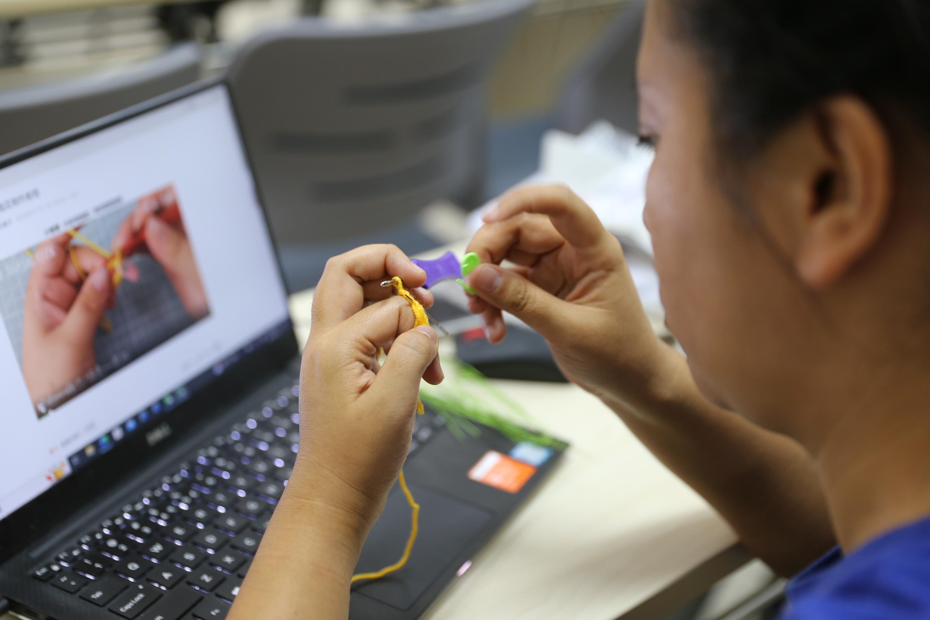 【马思伟老师完成第一圈花心编织工作】