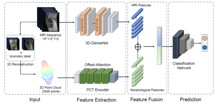 4.针对膝关节前交叉韧带损伤问题,利用MRI图像和点云两种模态的数据,构建了多模态预测模型,大幅提升了前交叉韧带损伤预测的准确性。